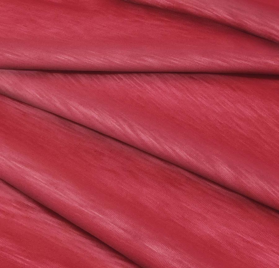 La tela base de este tejido es Punto Camiseta Jaspeado - Dubái, compuesta al 100% de poliéster, con un gramaje de 135 gr/m2 y un ancho de 160 cm. El color liso impreso es rojo carbón, representado por un CMYK de 22 88 61 13, lo que le otorga una tonalidad oscura y sofisticada. Este color secundario combina perfectamente con tonos grises, negros y blancos, otorgando una elegancia destacable. Cabe destacar que la tela está impresa con el color liso a una sola cara por impresión digital textil.