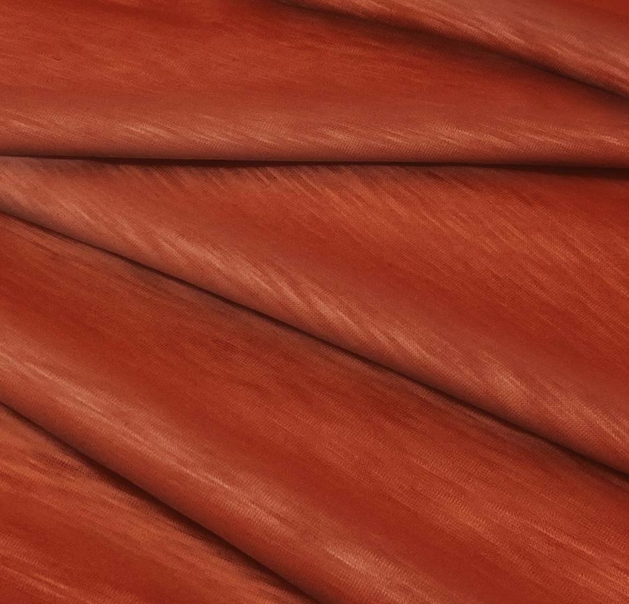 La tela base, Punto Camiseta Jaspeado - Dubái, es una tela de punto compuesta 100% de poliéster con un gramaje de 135 gr/m2 y un ancho de 160 cm. Su color liso impreso consta de rojo oscuro con valores de tinta de 27 para cyan, 85 para magenta, 92 para yellow y 28 para black (CMYK: 27 85 92 28). Este color secundario simboliza la energía, la fuerza y la pasión, siendo técnicamente un rojo oscuro intenso. Combina muy bien con tonos neutrales como el blanco, el negro y el gris, así como con tonos cálidos como el amarillo y el naranja.