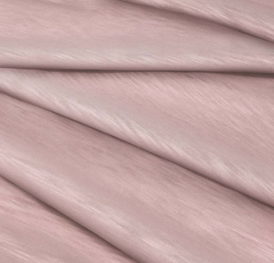 La tela base de nuestra prenda es el Punto Camiseta Jaspeado - Dubái, una tela de punto con composición 100% poliéster y un gramaje de 135 gr/m2. El color rosa impreso posee una tonalidad Margarita rosa con un CMYK de 11 39 25 1. Con referencias simbólicas, este color transmite dulzura, romanticismo y ternura. Técnicamente, es un rosa pastel con un porcentaje alto de magenta que lo hace más intenso. Combina muy bien con verdes suaves, rosas secos y amarillos también pastel. Es importante destacar que nuestro tejido está impreso con este color liso en una sola cara mediante impresión digital textil, lo que permite una libertad creativa y la posibilidad de reproducir diseños muy complejos con gran fidelidad.