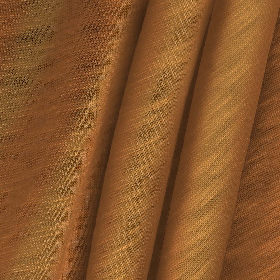 En cuanto al tejido en sí, se caracteriza por ser muy resistente, elástico y suave al tacto, lo que la hace ideal para prendas de moda femeninas y masculinas, especialmente para camisetas. La textura visual es translúcida y jaspeada, dándole un efecto difuminado y semi-opaco que agrega profundidad y textura a la prenda. Este color naranja combina perfectamente bien con colores como el blanco, el negro, el gris y el amarillo, creando gamas de tonalidades que pueden variar desde sutiles hasta vibrantes.