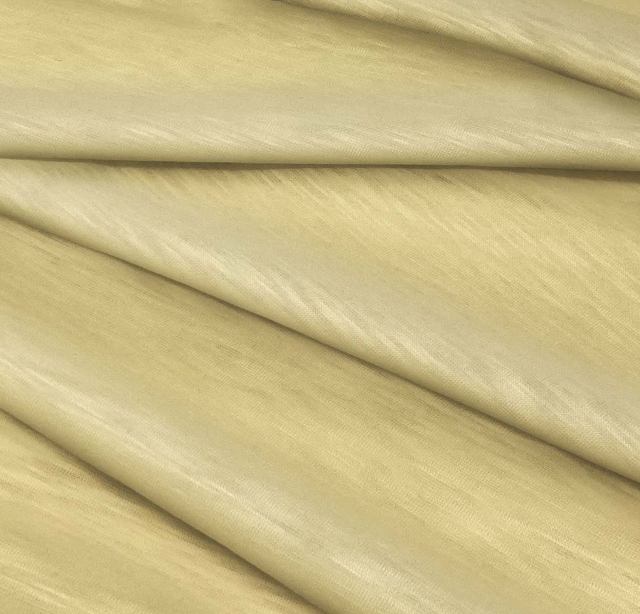La tela base es el Punto Camiseta Jaspeado - Dubái, una tela de punto con una composición del 100% poliéster y un gramaje de 135 gr/m2. Su ancho es de 160 cm y su color liso impreso es naranja claro, con una combinación de tintas de cyan (8), magenta (19), yellow (55) y black (0), siendo su CMYK 8 19 55 0. La tela tiene una textura visual jaspeada y es translúcida al tacto. La impresión se realiza a una sola cara por impresión digital textil, por lo que es importante tener en cuenta que no es un tejido tintado sino impreso por una sola cara.