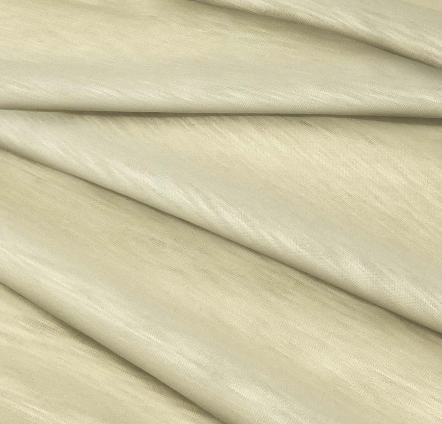 Por otro lado, la tela base cuenta con una serie de características técnicas y simbólicas, como por ejemplo su textura lisa y elástica, lo que la hace ideal para prendas de punto y camisetas tanto para hombre como para mujer. Se trata de una tela atemporal, que puede usarse en cualquier temporada del año. En cuanto al color liso impreso, destaca por su delicadeza y elegancia, y su tonalidad cremosa le otorga un toque sofisticado a la prenda.