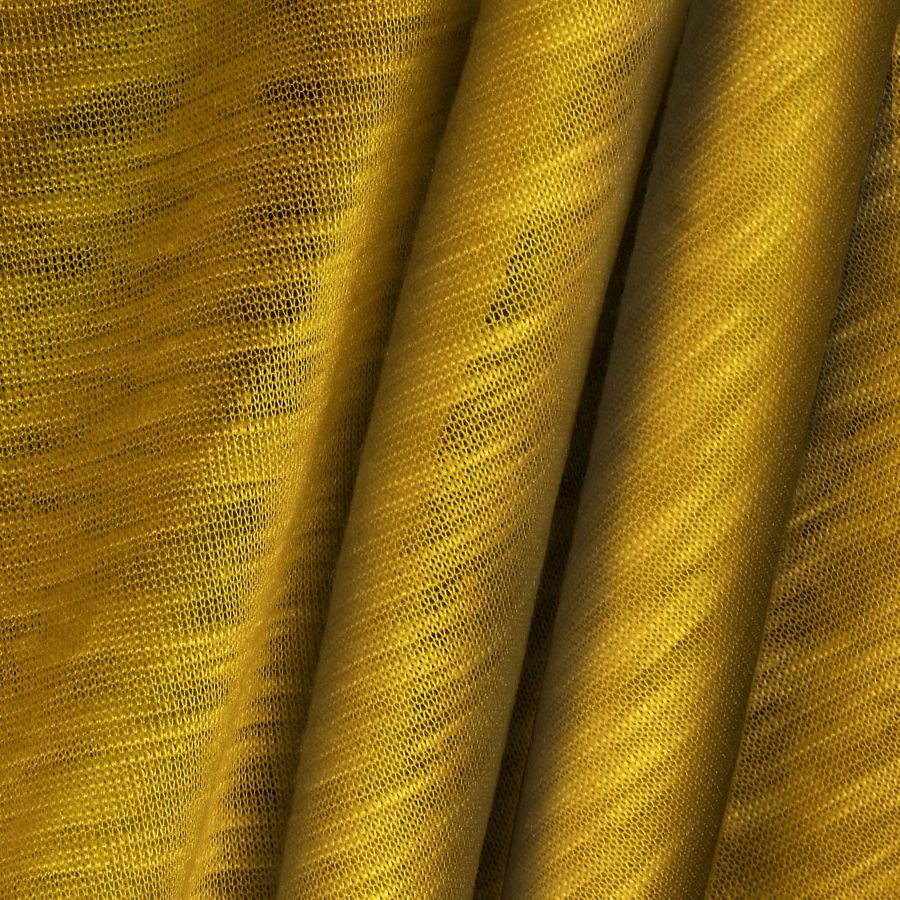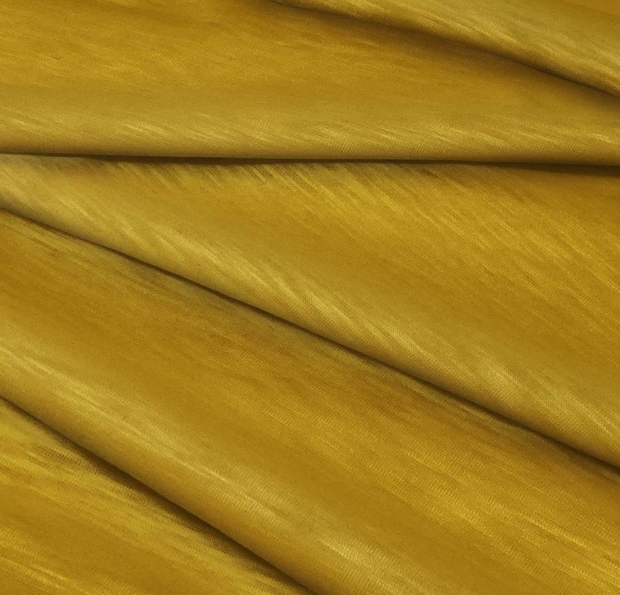 La tela base de esta prenda es Punto Camiseta Jaspeado - Dubái, una tela de punto con un gramaje de 135 gr/m2 y un ancho de 160 cm. Está compuesta al 100% de poliéster y su color liso impreso utiliza los siguientes valores CMYK: 29 45 100 21, generando un sutil color marrón caramelo en la tela. Con un acabado mate y una textura visual jaspeada y translúcida, este color secundario combina muy bien con tonos cálidos como rojos y amarillos, además de colores más neutros como el negro o el gris. La tela está impresa con el color liso a una sola cara, mediante impresión digital textil.