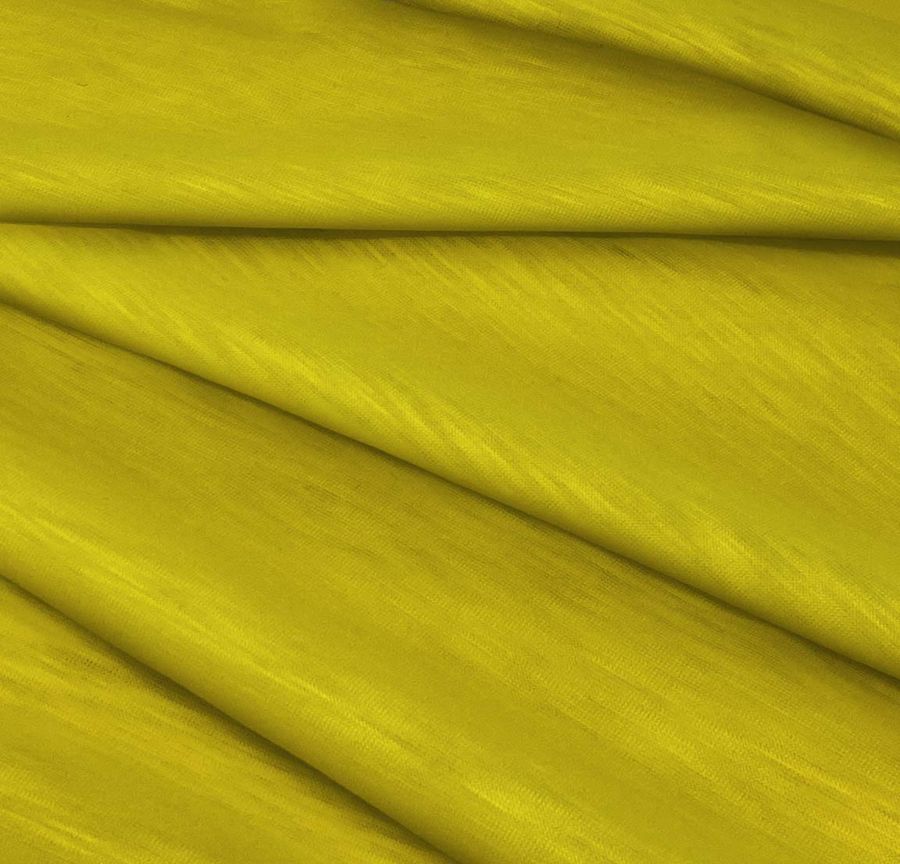 Las características generales de la tela base son variadas, con una textura lisa y visual translúcida, suave al tacto y elástica. El color liso impreso aporta un aspecto cálido y acogedor. La tela es adecuada para prendas de ropa de hombre y mujer, como camisetas, pero también para otros usos en moda.