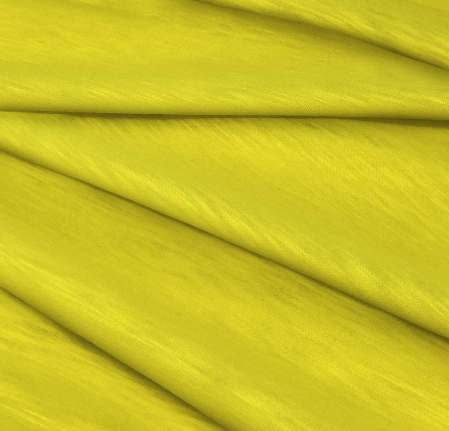 La tela base es Punto Camiseta Jaspeado - Dubái, compuesta por 100% poliéster y con un gramaje de 135 gr/m2. El color liso impreso es Amarillo canario, con un CMYK de 11, 9, 90, 0. Este color evoca alegría, optimismo y creatividad, siendo un tono vibrante, cálido y enérgico. Connota una sensación de juventud y frescura, y combina muy bien con otros colores, como el blanco, el gris o el violeta.