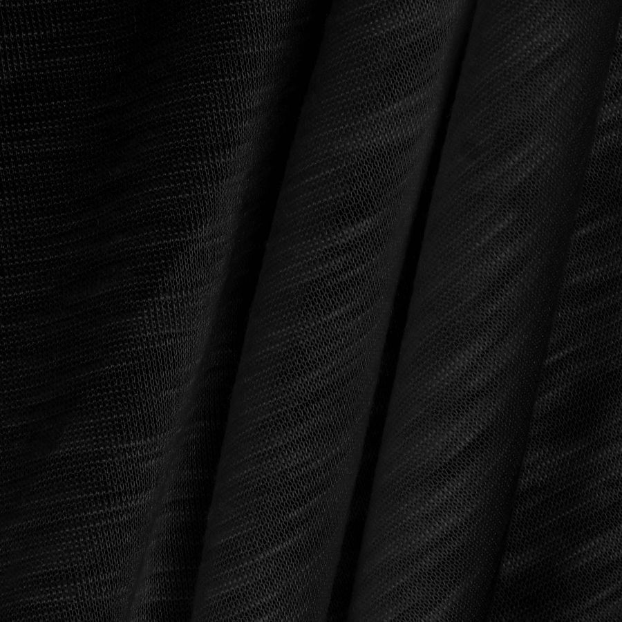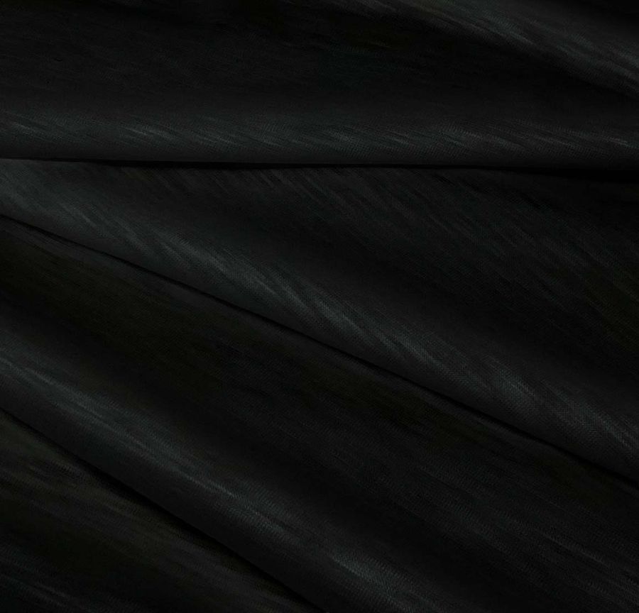 La tela base es Punto Camiseta Jaspeado - Dubái, compuesta por 100% POLIÉSTER, con gramaje de 135 gr/m2 y ancho de 160 cm. El color liso impreso en la tela es Negro Noche, con una intensidad de tinta CYMK de 91 77 63 97. El color secundario, aunque parezca un negro liso a simple vista, es en realidad una mezcla de cyan, magenta y yellow, lo que aporta profundidad y riqueza en la tonalidad del color. Este tono combina especialmente bien con tonos plateados, grises oscuros y algunas tonalidades de verde turquesa. Esta tela está impresa con el color liso a una sola cara por impresión digital textil, lo que garantiza una alta calidad y definición en el color.