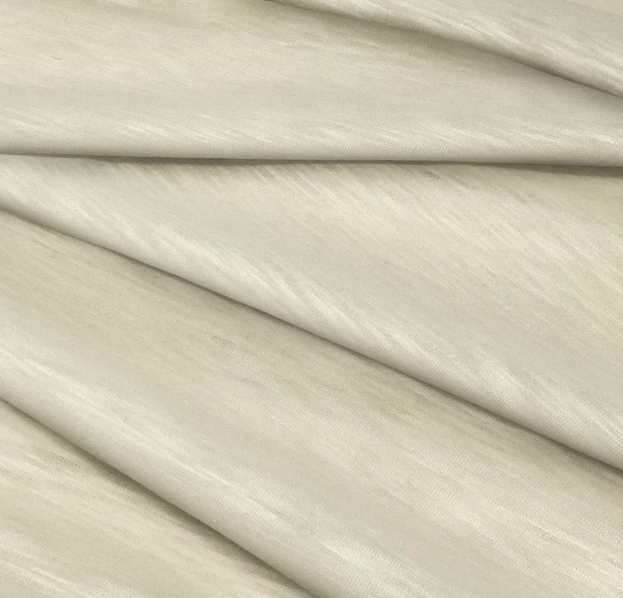 La tela base Punto Camiseta Jaspeado - Dubái es un tejido de punto de poliéster con un Gramaje de 135 gr/m2 y un ancho de 160 cm. Su color liso impreso es Crudo Seda Cruda con un CMYK de 4 9 28 0, lo que indica que es un color suave y sutil con predominancia del amarillo y con ausencia de tinta negra.