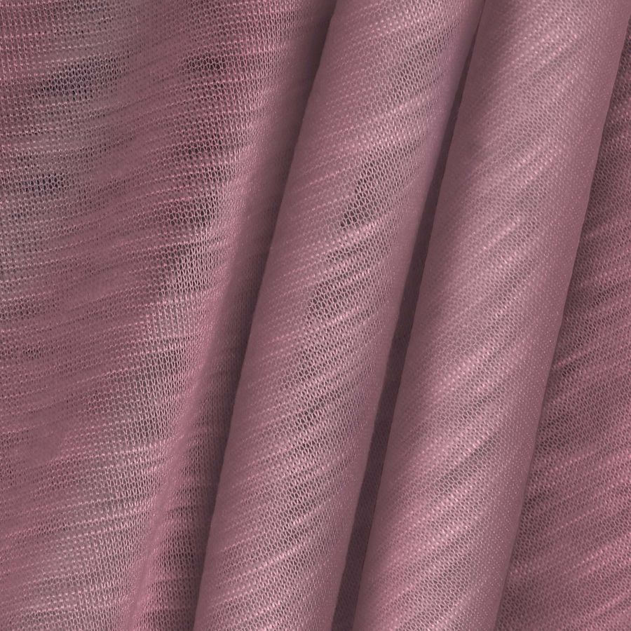 La Punto Camiseta Jaspeado - Dubái, tela de punto 100% poliéster con gramaje de 135 gr/m2 y ancho de 160 cm, se presenta con un color liso impreso en tonalidades de rosa, pintalabios rosa y rosa púrpura, cuyo CMYK es 15 51 20 1. Este color secundario, simbólicamente evocador de sensaciones de feminidad y elegancia, combina especialmente con tonalidades grises, azules, burdeos y amarillos pálidos. Esta tela está impresa con el color liso a una sola cara por impresión digital textil, lo que le otorga una gran precisión en la reproducción del diseño.