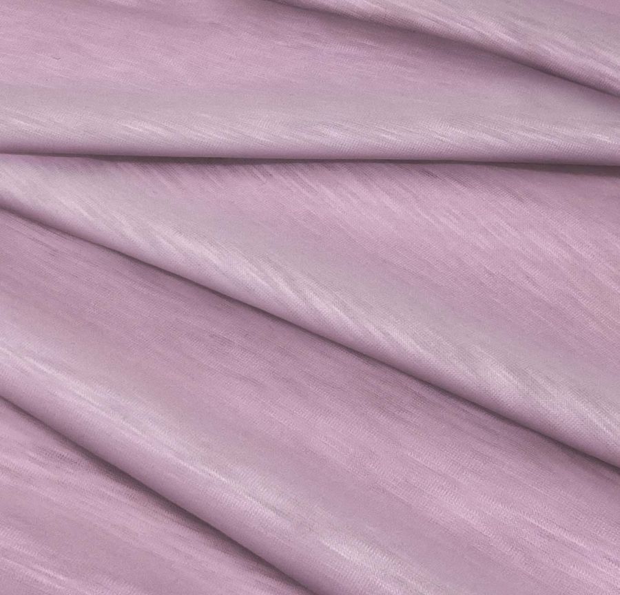 La tela base, Punto Camiseta Jaspeado - Dubái, es una tela de punto con composición 100% poliéster, con un gramaje de 135 gr/m2 y un ancho de 160 cm. Este tejido presenta una textura y tacto liso, visual translúcida y jaspeada. El color liso impreso es un espectacular Rosa-Malva Profundo, definido por un CMYK de 22 46 11 0, compuesto principalmente por tintas cian y magenta y conteniendo una mínima proporción de amarillo, sin presencia de negro. Este vibrante color secundario combina a la perfección con tonos grisáceos, verdes y dorados, lo que lo convierte en un color muy versátil. Cabe mencionar que la tela está impresa con el color liso a una sola cara por impresión digital textil en alta resolución, lo que permite una excelente calidad de imagen y una fidelidad cromática única.
