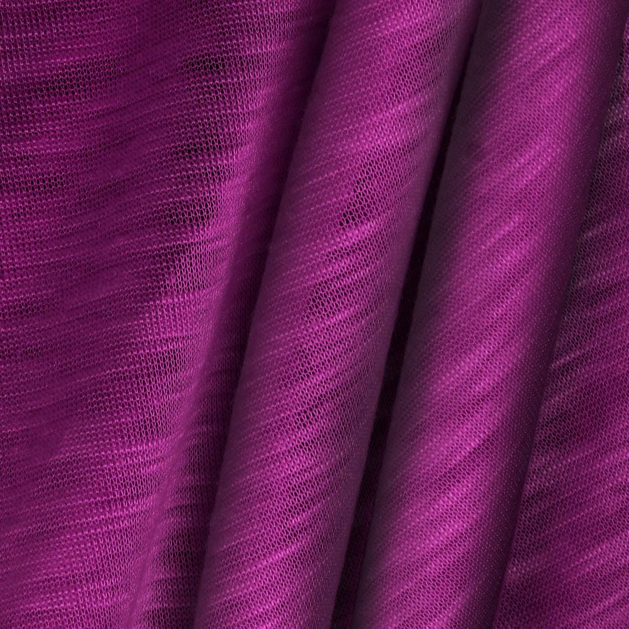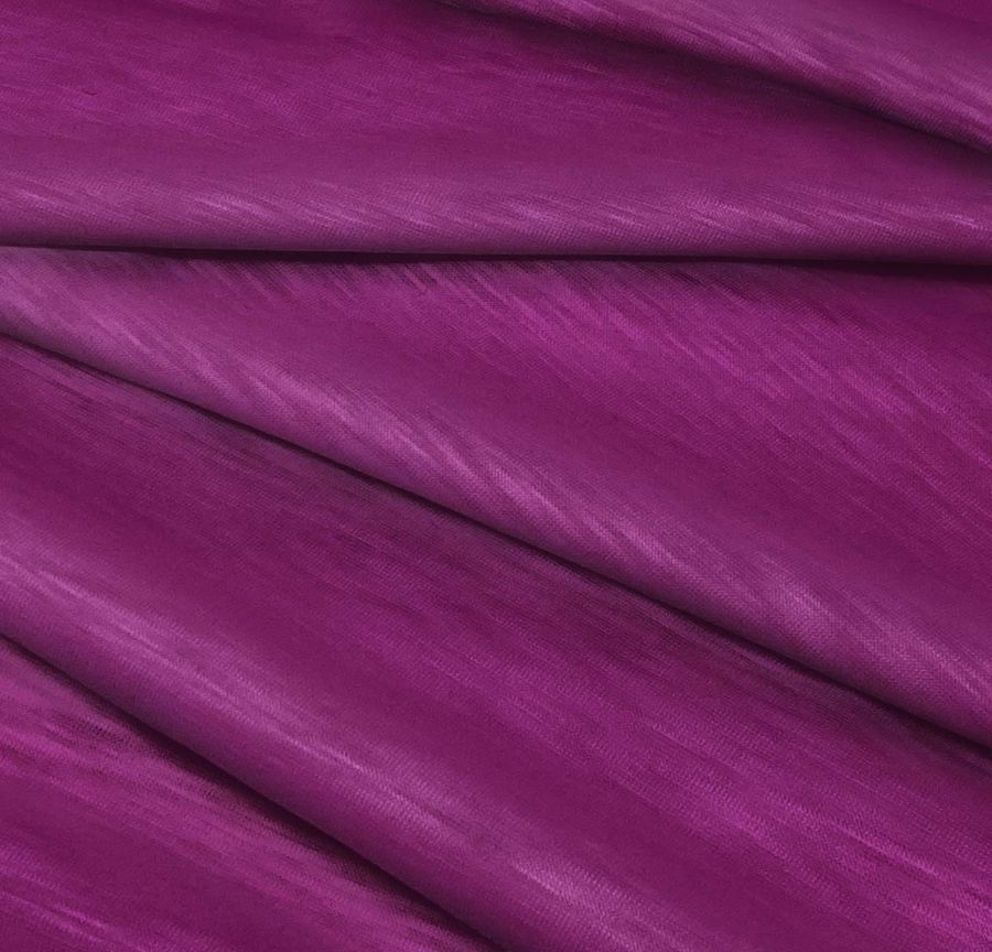 La tela base es Punto Camiseta Jaspeado - Dubái, una tela de punto de 100% poliéster con un gramaje de 135 gr/m2 y un ancho de 160 cm. El color liso impreso es Morado Lirio Morado, que se compone de 58% Cyan, 99% Magenta, 25% Yellow y 20% Black. Se trata de un tono vivo y femenino que combina muy bien con los tonos pastel y los tonos oscuros como el negro o el gris.