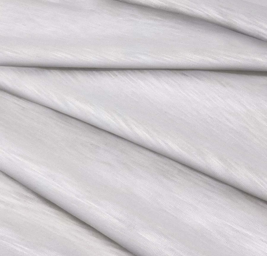 La tela base tiene una textura suave y elástica que la hace ideal para prendas de punto femeninas y masculinas, así como para camisetas. Además, su acabado jaspeado y translúcido la hacen única y original. En cuanto al color liso impreso, tiene una textura y tacto igualmente suave y una transparencia sutil que le da un toque de elegancia a las prendas en las que se utilice.