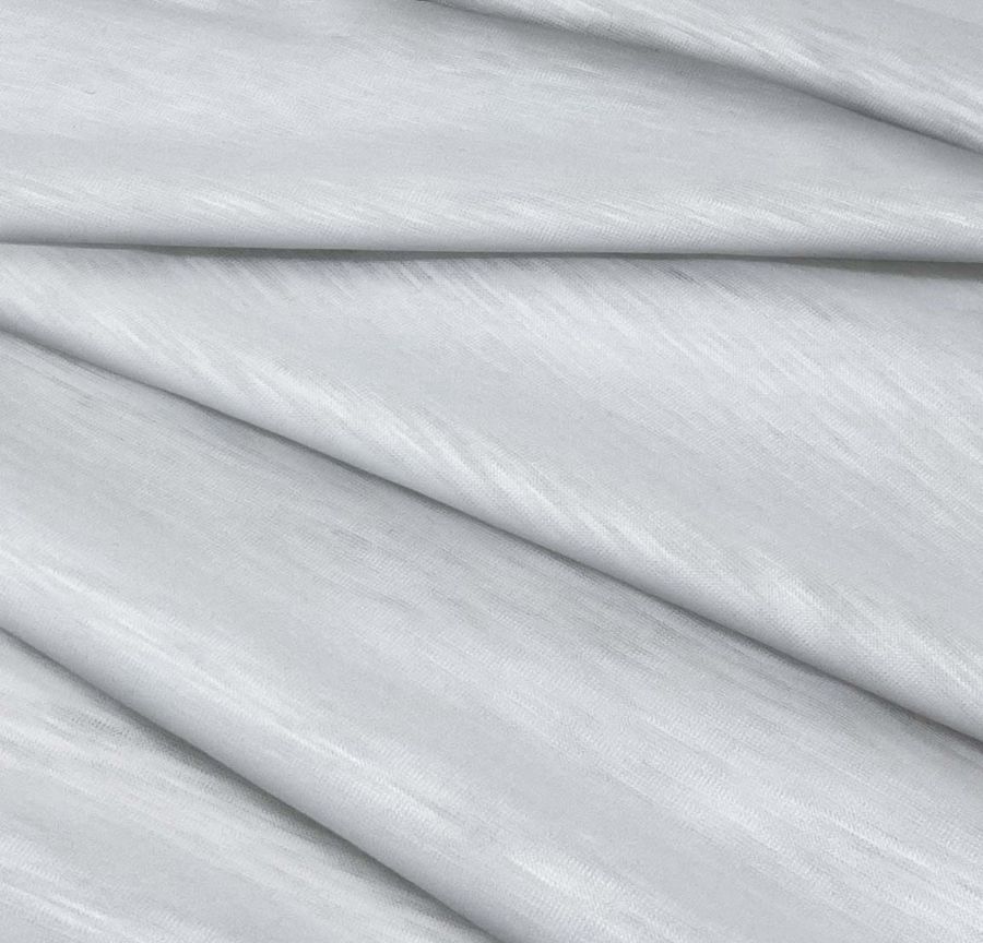 En cuanto a sus características generales, la tela base presenta una textura suave y elástica tanto en su superficie como en su tacto, con un efecto visual translúcido y jaspeado que la hace única y atractiva. Por su composición y estructura, la tela es perfecta para la confección de prendas de punto como camisetas, tanto para mujer como para hombre, siendo una opción atemporal que puede utilizarse en cualquier época del año.