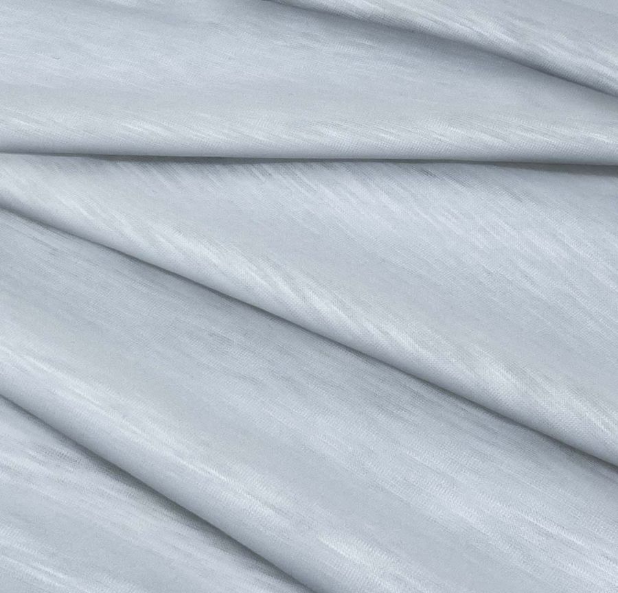 El tejido se imprime con tecnología de sublimación (poliéster) a una sola cara, lo que significa que solo se puede ver el color en un lado de la tela. Las características generales de este tejido son su textura suave y elástica, la cual lo hace ideal para prendas de punto, como camisetas. Además, este tejido tiene una textura visual translúcida y jaspeada que lo hace muy atractivo.