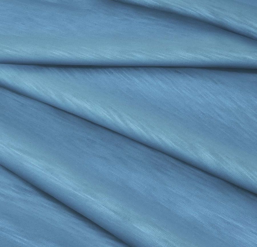 La tela base, Punto Camiseta Jaspeado - Dubái, es una tela de punto compuesta por 100% poliéster con un gramaje de 135 gr/m2 y un ancho de 160 cm. El color liso impreso es de un azul SteelBlue con un CMYK de 67 39 15 2. Este color refleja una sensación de estabilidad y confianza, además de transmitir una fuerte personalidad. El color secundario es el jaspeado, el cual se asemeja a una textura visual translúcida y se combina perfectamente con colores como el blanco, gris y negro.