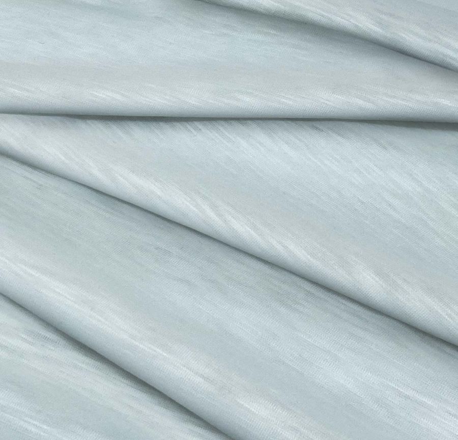 La tela está impresa con el color liso a una sola cara por impresión digital textil, lo que significa que el color está impreso en una sola cara de la tela en lugar de ser tintado. La tela cuenta con una textura jaspeada y translúcida, y es elástica y de tacto suave. El Azul del Golfo es un color bastante intenso y vibrante que resalta en medio de otras tonalidades más frías o neutras, lo que hace que sea perfecto para prendas y ropa de moda tanto para hombres como para mujeres, especialmente camisetas.