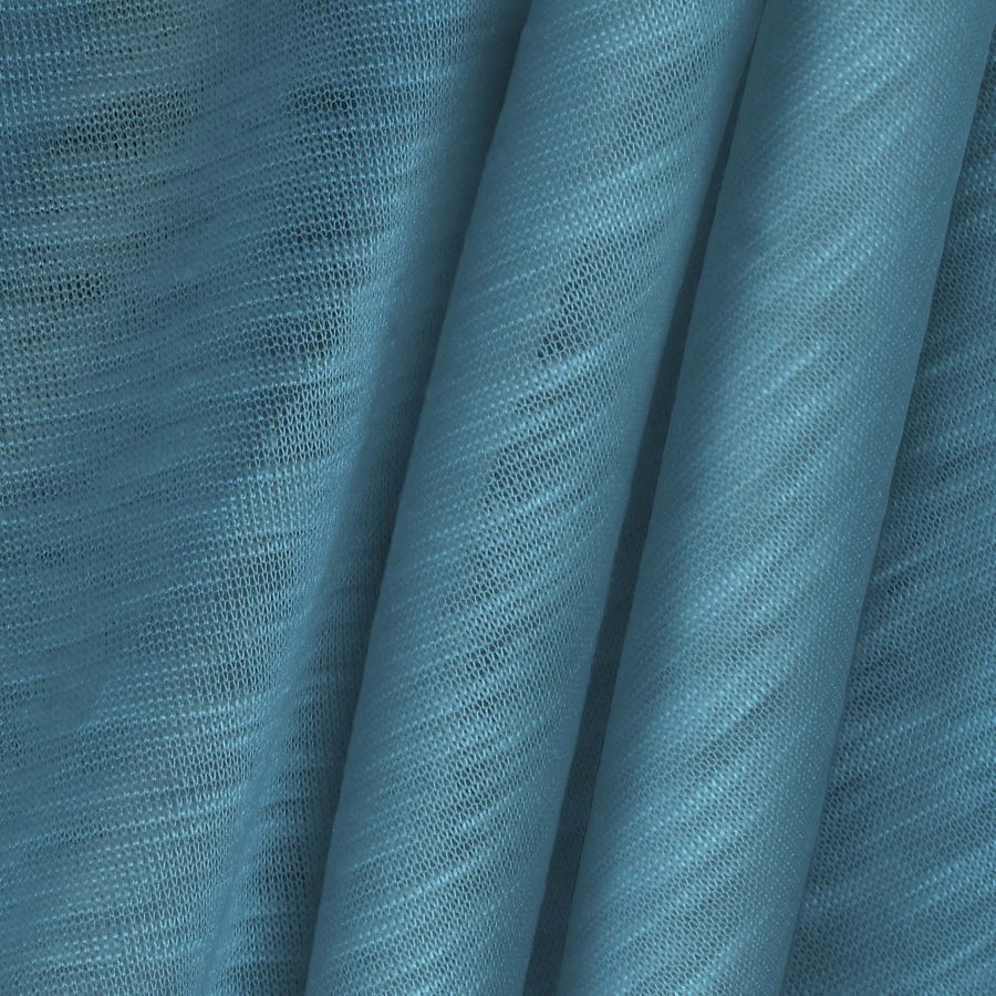 La tela base es Punto Camiseta Jaspeado - Dubái, compuesta al 100% por poliéster y con un gramaje de 135 gr/m2. El color liso impreso es un Azul Hielo Azul Glacial, que está compuesto por una tinta Cyan de 63, una tinta Magenta de 21, una tinta Yellow de 17 y una tinta Black de 1, con un CMYK de 63 21 17 1. Este color transmite una sensación de frescura y limpieza, que se asocia a la serenidad. El color secundario que se puede apreciar en la tela es un gris claro, que simboliza la neutralidad y la elegancia. Este color combina particularmente muy bien con azules más oscuros y marrones claros.