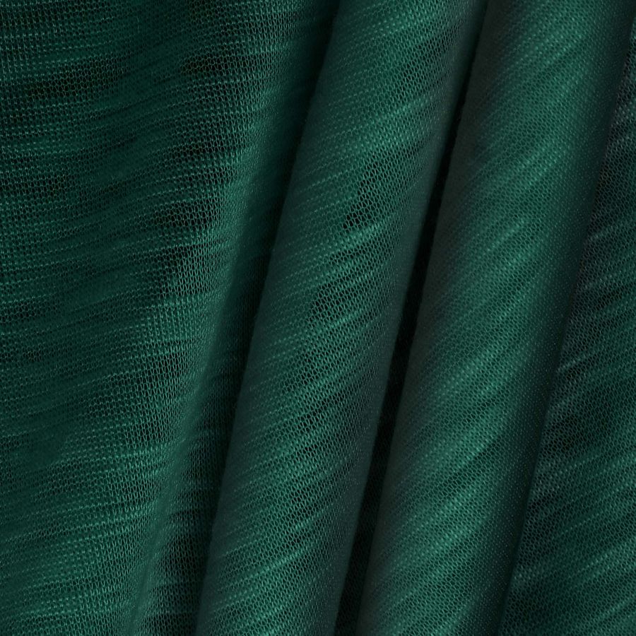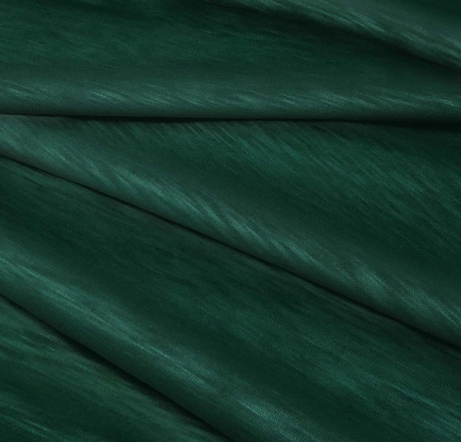 La tela base, denominada Punto Camiseta Jaspeado - Dubái, es un tejido de punto con una composición de 100% poliéster. Con un gramaje de 135 gr/m2 y un ancho de 160 cm, destaca por su delicada textura y tacto suave. El color liso impreso, en tonalidades de verde bosque oscuro, se obtiene a través de la combinación de las tintas Cyan (91), Magenta (50), Yellow (73) y Black (66) que forman el perfil CMYK 91 50 73 66. Este color secundario transmite una sensación de serenidad, equilibrio y crecimiento. Combina a la perfección con colores tierra y neutros, como el beige o el gris claro, así como con tonalidades de verde similares, como el oliva o el esmeralda.