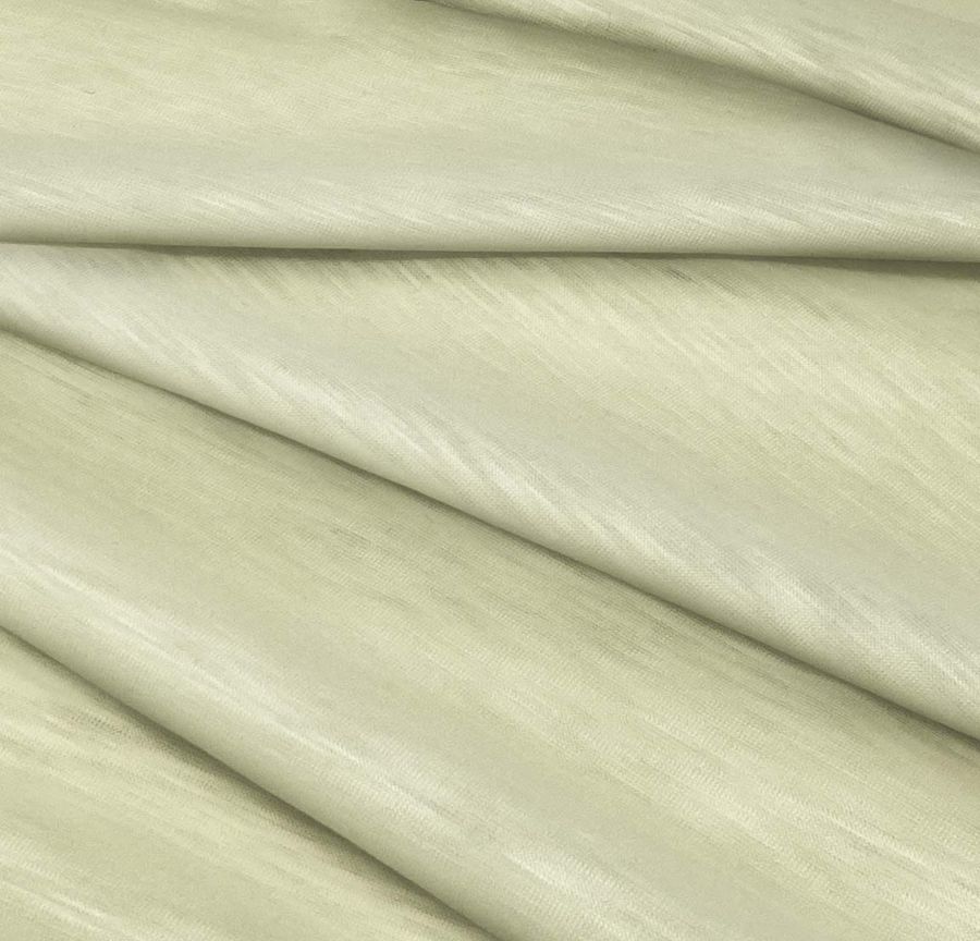 La tela está impresa con el color liso a una sola cara por impresión digital textil, lo que significa que solo una superficie del tejido presenta el color impreso, aportando una mayor nitidez y detalle en los diseños. En cuanto a las características generales, la tela base presenta una textura y tacto lisos, y una textura y transparencia translúcida y jaspeada. También cuenta con propiedades elásticas, lo que la hace ideal para prendas de punto.