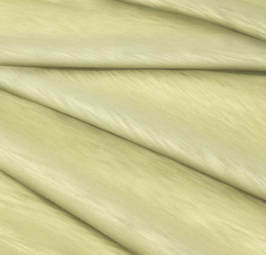 La tela base, Punto Camiseta Jaspeado - Dubái, está compuesta por 100% POLIÉSTER, con un gramaje de 135 gr/m2 y un ancho de 160 cm. El color del tejido liso impreso es Amarillo Caqui, con un CMYK de 8 2 51 0. Este color evoca la calidez del sol y la naturaleza, creando un ambiente acogedor y natural. Combina muy bien con tonos tierra, verdes y azules.