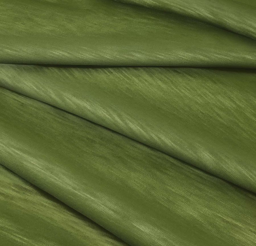 La tela base es la Punto Camiseta Jaspeado - Dubái, una tela de punto 100% poliéster con un gramaje de 135 gr/m2 y un ancho de 160 cm. El color liso impreso es un verde militar con un CMYK de 62 41 88 34. Este color da una sensación de fuerza y resistencia, evocando la imagen del uniforme militar. Este color es muy versátil y combina bien con otros tonos neutros como grises y negros, así como con tonos tierra y naturales.