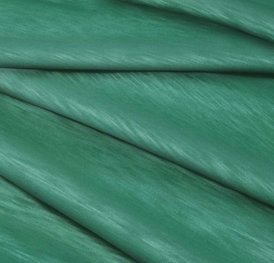 La Punto Camiseta Jaspeado - Dubái es una tela de punto compuesta por 100% poliéster y con un gramaje de 135 gr/m2, que se presenta en un ancho de 160 cm. El color liso impreso en el tejido es un verde mar profundo con un CMYK de 76 31 61 17. Este color secundario simboliza la tranquilidad del mar profundo, y técnicamente su proceso de impresión digital textil garantiza un color uniforme y duradero. Este color combina muy bien con tonos blancos, azules y grises, lo que permite una gran variedad de combinaciones para cualquier prenda.
