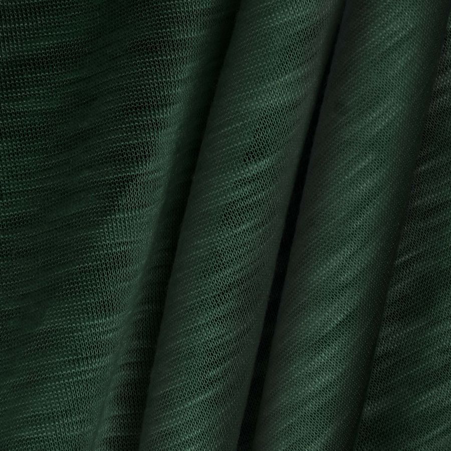 La tela base es un tejido de punto llamado Punto Camiseta Jaspeado - Dubái, compuesta de 100% poliéster y con un gramaje de 135 gr/m2 y un ancho de 160 cm. El color liso impreso es un verde bosque oscuro con un CMYK de 85 57 78 76. Este color transmite un sentido de equilibrio, frescura y naturaleza. Se combina excelentemente con los colores beige, negro, gris oscuro y amarillo mostaza.