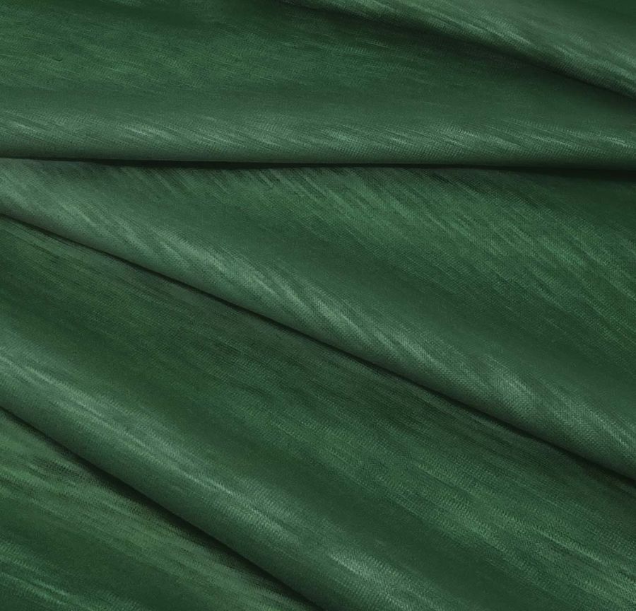 La tela base es el Punto Camiseta Jaspeado - Dubái, un tejido de punto de poliéster con un gramaje de 135 gr/m2 y un ancho de 160 cm. Su color liso impreso es un verde bosque oscuro, con una mezcla de tintas Cyan, Magenta, Yellow y Black que dan como resultado un CMYK de 79 45 78 49. Este color simboliza la naturaleza, la calma y la tranquilidad, y combina especialmente bien con tonos tierra y beige para crear un look clásico y elegante.
