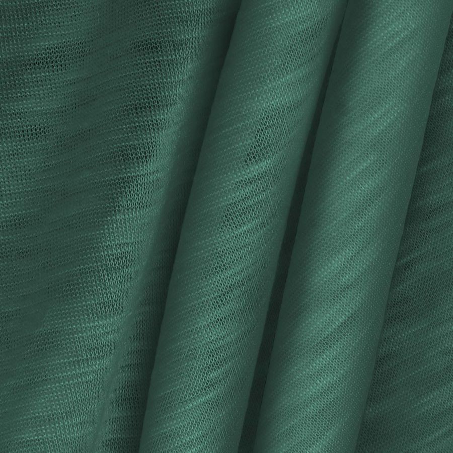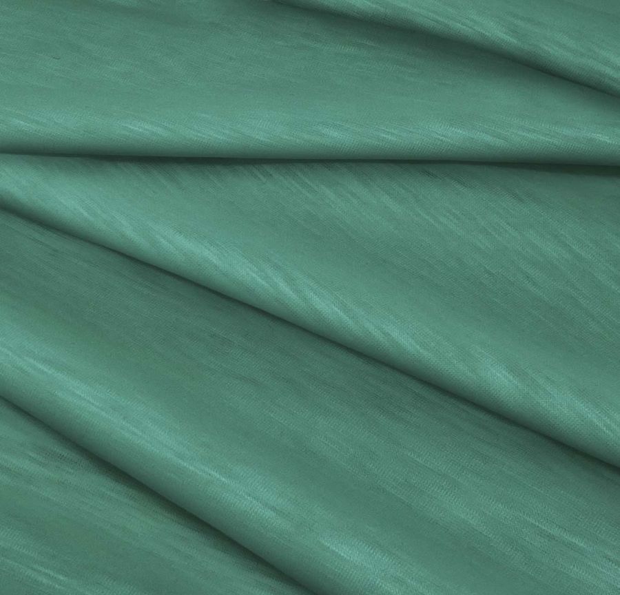 La tela base es Punto Camiseta Jaspeado - Dubái, una suave tela de punto de 100% poliéster con un gramaje de 135 g/m2 y un ancho de 160 cm. El color liso impreso es un hermoso verde menta oscuro, representado por un CMYK de 71 33 57 18. Este color secundario tiene un simbolismo de frescura y armonía, que se acentúa en particular al combinarse con otros tonos de verde, beige y rosa.