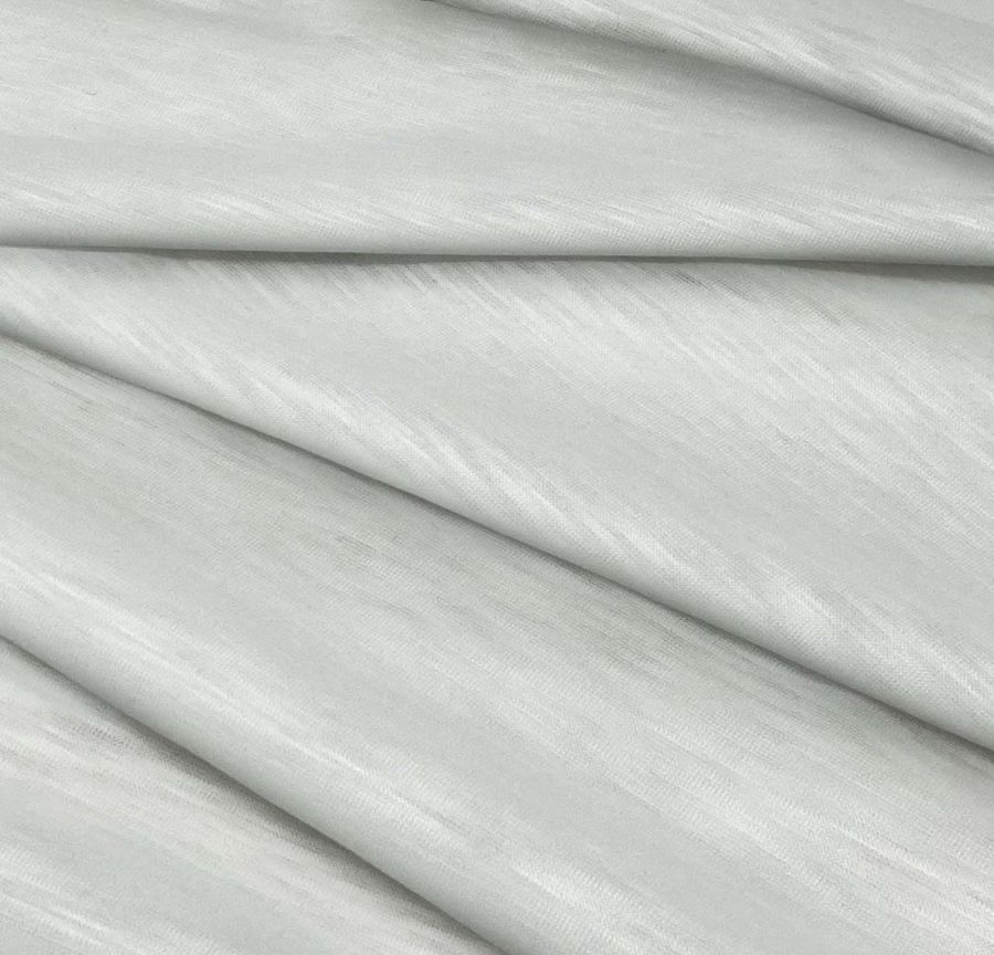 Las características de la tela base incluyen una textura y tacto lisos, una textura visual translúcida y jaspeada, y una textura táctil elástica. El gramaje de la tela es de 135 gr/m2, lo que la hace ligera y cómoda para llevar puesta. Su ancho es de 160 cm y es perfecta para la fabricación de ropa de hombre y mujer, especialmente camisetas y prendas de punto. Esta tela es atemporal y se utiliza a lo largo de todo el año.