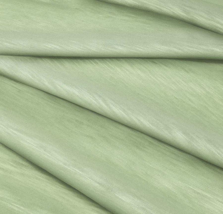 La tela base de nuestra prenda es la Punto Camiseta Jaspeado - Dubái, hecha de 100% poliéster con un gramaje de 135 gr/m2 y un ancho de 160 cm. La tela es de color verde rana, impresa mediante la tecnología de sublimación con un CMYK de 35 5 49 0. El color secundario es un tono vivo y alegre, perfecto para prendas de verano y frías. Combina bien con tonos neutros y brillantes como el blanco y el rosa. El tejido está impreso con el color liso a una sola cara por impresión digital textil, lo que asegura la calidad y homogeneidad del color.