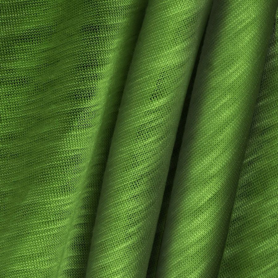 La tela base es lisa al tacto, translúcida y cuenta con un jaspeado visual que le aporta textura. Es elástica lo que la hace perfecta para confeccionar prendas de punto ajustadas al cuerpo. Su aplicación principal es en la moda para hombre y mujer, especialmente en camisetas y prendas de punto.