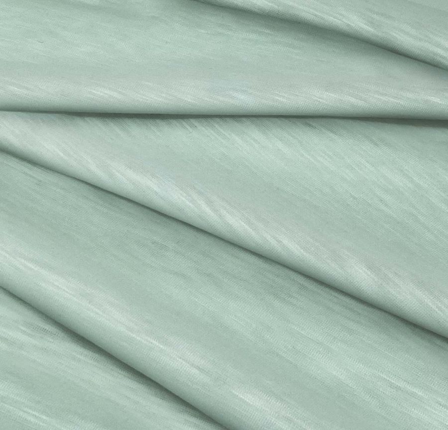 La tela base es la Punto Camiseta Jaspeado - Dubái, compuesta por 100% poliéster con un gramaje de 135 gr/m2 y un ancho de 160 cm. El color liso impreso es Verde Azulverde, con un CMYK de 37 6 29 0. Este color secundario es una unión armoniosa entre el verde y el azul, lo que proporciona a la tela una apariencia fresca y natural. El verde representa la naturaleza, mientras que el azul significa libertad y armonía. Este color combina particularmente bien con tonos tierra, beige, blanco, gris y negro. La tela está impresa con color liso a una sola cara por medio de impresión digital textil.