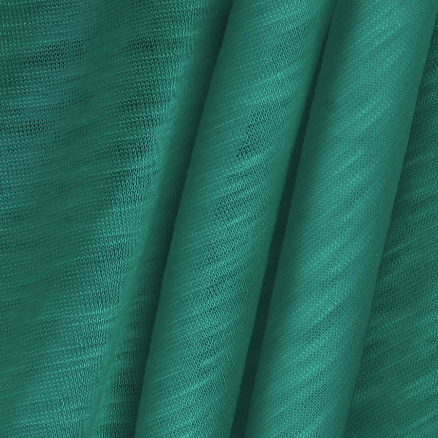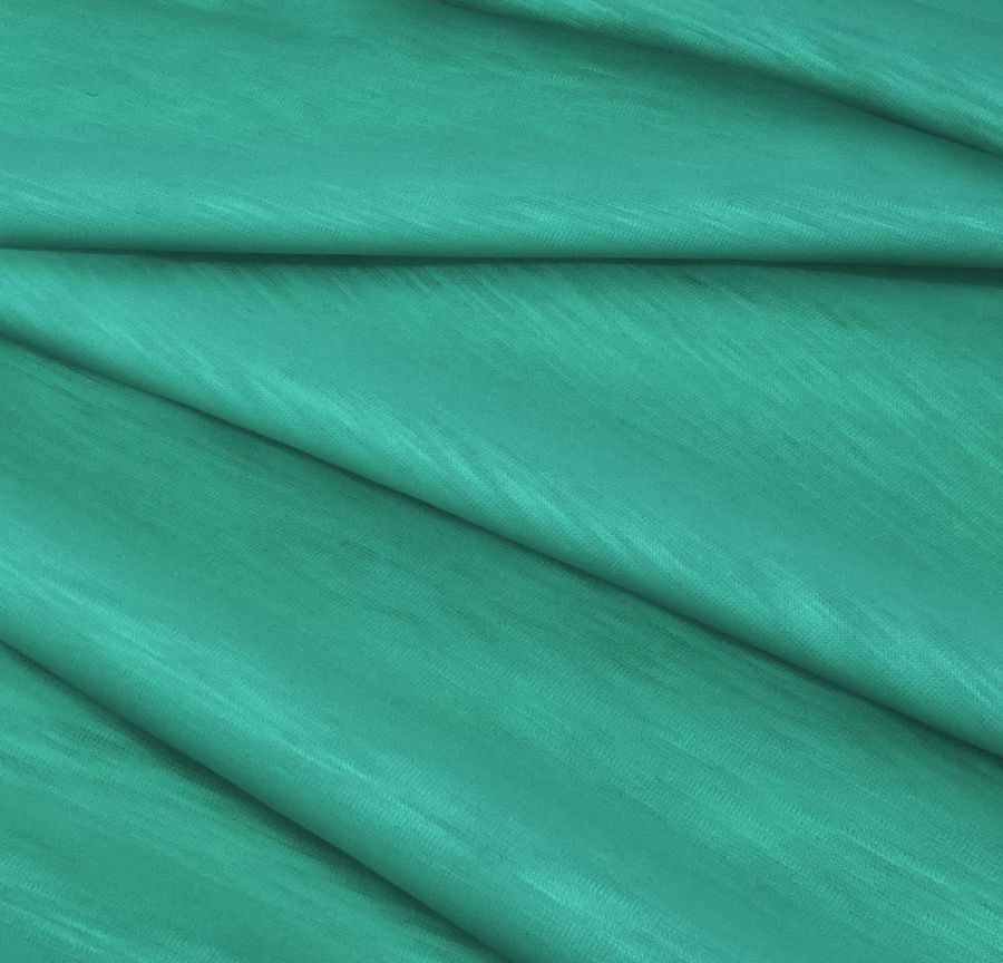 La tela base es la Punto Camiseta Jaspeado - Dubái con una composición del 100% poliéster y un gramaje de 135 gr/m2. Está impresa con un color liso de un verde menta intenso, cuyo contenido de tinta es de Cyan: 75, Magenta: 15, Yellow: 55 y Black: 2 (CMYK: 75 15 55 2). El color menta se puede describir como fresco, vibrante y moderno, se asocia con la naturaleza y la tranquilidad. Combina perfectamente con colores claros como el blanco y el beige, con tonos grises suaves y con la elegancia del negro.