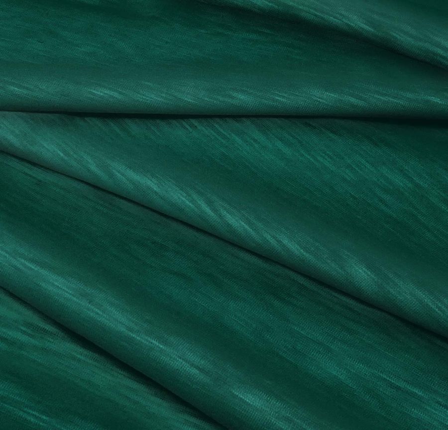 La tela base es la Punto Camiseta Jaspeado - Dubái, una tela de punto compuesta por 100% poliéster, con un gramaje de 135 gr/m2 y un ancho de 160 cm. El color liso impreso es un verde profundo con matices de teal, representado en la tinta Cyan: 92, Magenta: 44, Yellow: 69 y Black: 54, con un CMYK de 92 44 69 54. Este color simboliza la naturaleza, la paz y la serenidad, y técnicamente es un color fresco y llamativo, que combina perfectamente con colores como el blanco, el negro, el gris y el beige.