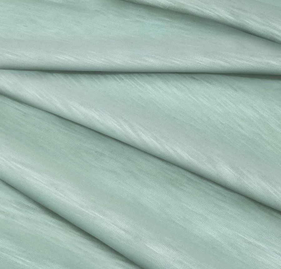 La tela base Punto Camiseta Jaspeado - Dubái es una tela de punto compuesta de 100% poliéster, con un gramaje de 135 gr/m2 y un ancho de 160 cm. El color liso impreso en esta tela es Verde Azul Verde, con un CMYK de 40 7 29 0. Este color simboliza la naturaleza, la frescura y la calma. Es un color refrescante que combina muy bien con tonos crudos y blancos.