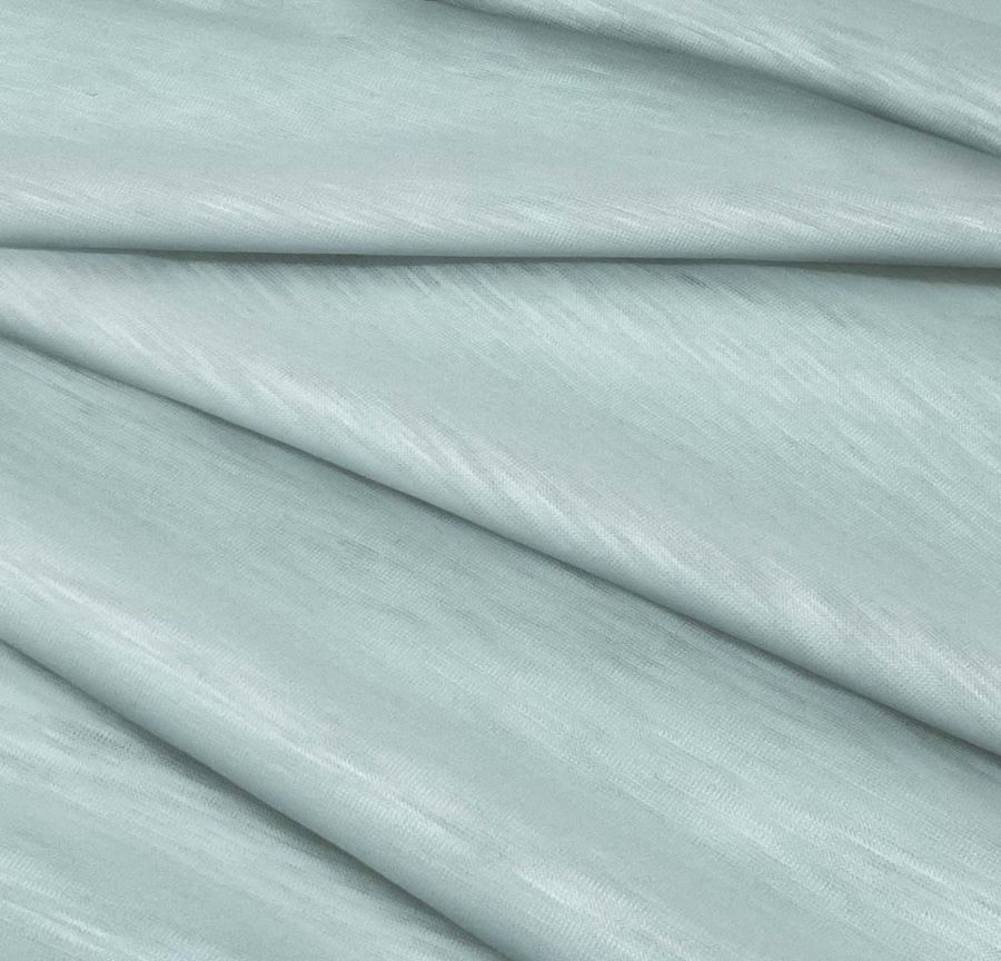 En cuanto a las características generales de la tela base, se puede destacar su textura jaspeada y su tacto suave y elástico. Además, es una tela visualmente translúcida y, como se ha mencionado anteriormente, es especialmente adecuada para la confección de prendas de moda, tanto para hombre como para mujer, como camisetas.