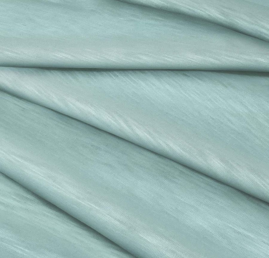 El tejido base de la tela Punto Camiseta Jaspeado - Dubái es una tela de punto compuesta por 100% poliéster, con un gramaje de 135 gr/m2 y una anchura de 160 cm. En cuanto al color liso impreso, es un verde menta creado con una tinta Cyan de 43, una tinta magenta de 8 y una tinta yellow de 25. El contenido del CMYK es 43 8 25 0. Este color es símbolo de equilibrio y frescura, y se combina especialmente bien con tonos claros y neutros como el blanco, beige y gris claro.
