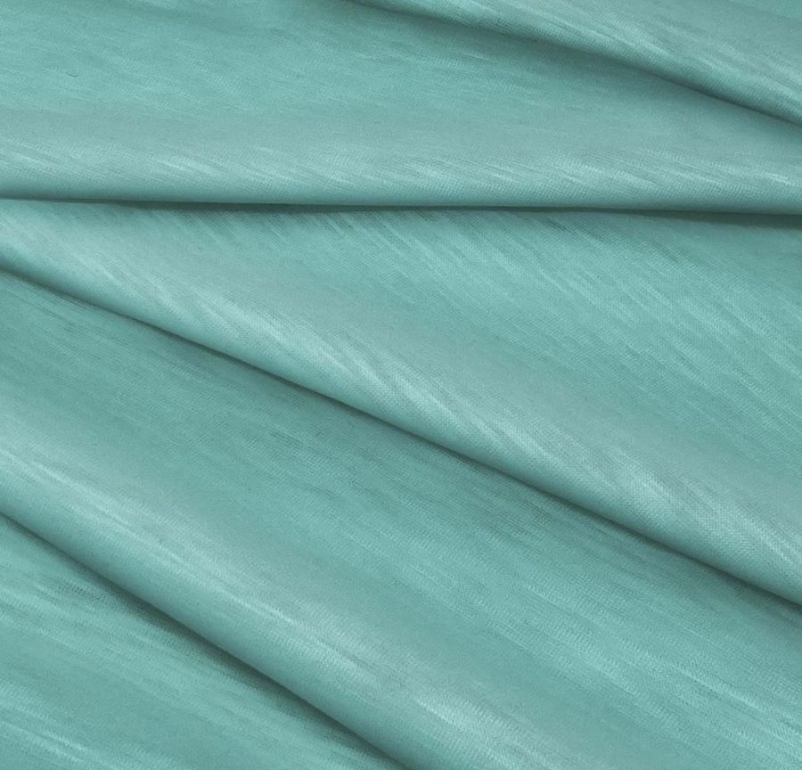 La tela base Punto Camiseta Jaspeado - Dubái tiene una composición 100% poliéster y un gramaje de 135 gr/m2 con un ancho de 160 cm. El color liso impreso en esta tela es Verde Menta con un CMYK de 59 13 35 1. Este color se caracteriza por su frescura y naturalidad y combina especialmente bien con tonos neutros como el blanco o el gris, amarillos claros y tonalidades pastel. La tela está impresa con el color liso a una sola cara por impresión digital textil.