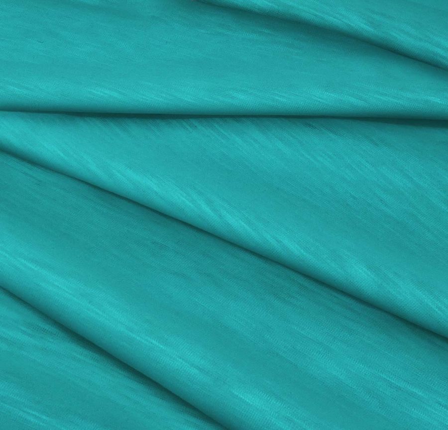 La tela base, Punto Camiseta Jaspeado - Dubái, es una tela de punto con composición 100% poliéster, con un gramaje de 135 gr/m2 y un ancho de 160 cm. Su color liso impreso es verde DarkCyan, cuyo CMYK es de 77 17 39 2 y está compuesto por tintas de cian, magenta, amarillo y negro. Este color se caracteriza por ser profundo y denso, evocando la naturaleza, la calma y la serenidad. Complementa perfectamente con tonalidades de marrón y beige, contrastando con tonos amarillos y anaranjados.
