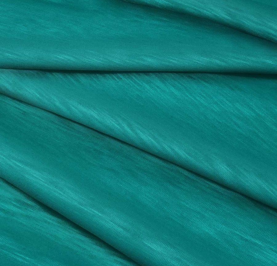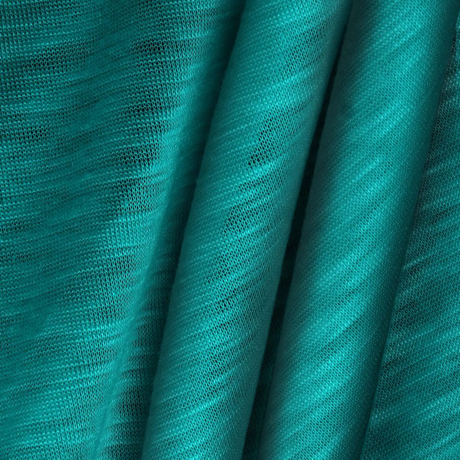 La tela base de este tejido es la Punto Camiseta Jaspeado - Dubái, una tela de punto con una composición del 100% de poliéster, lo que la convierte en una tela suave y ligera con un gramaje de 135 gr/m2. Tiene un ancho de 160 cm y se puede utilizar en una amplia variedad de aplicaciones, desde prendas de moda para hombre y mujer hasta camisetas. Es una tela atemporal, ideal para ser utilizada en cualquier temporada. El color liso impreso en este tejido es de un verde azulado medio que corresponde a un CMYK de 85-30-50-17. Este color secundario se caracteriza por su frescura y tranquilidad, y combina bien con tonos de tierra y colores naturales en una paleta de colores orgánica y suave. Es importante destacar que este tejido está impreso con el color liso a una sola cara por impresión digital textil.