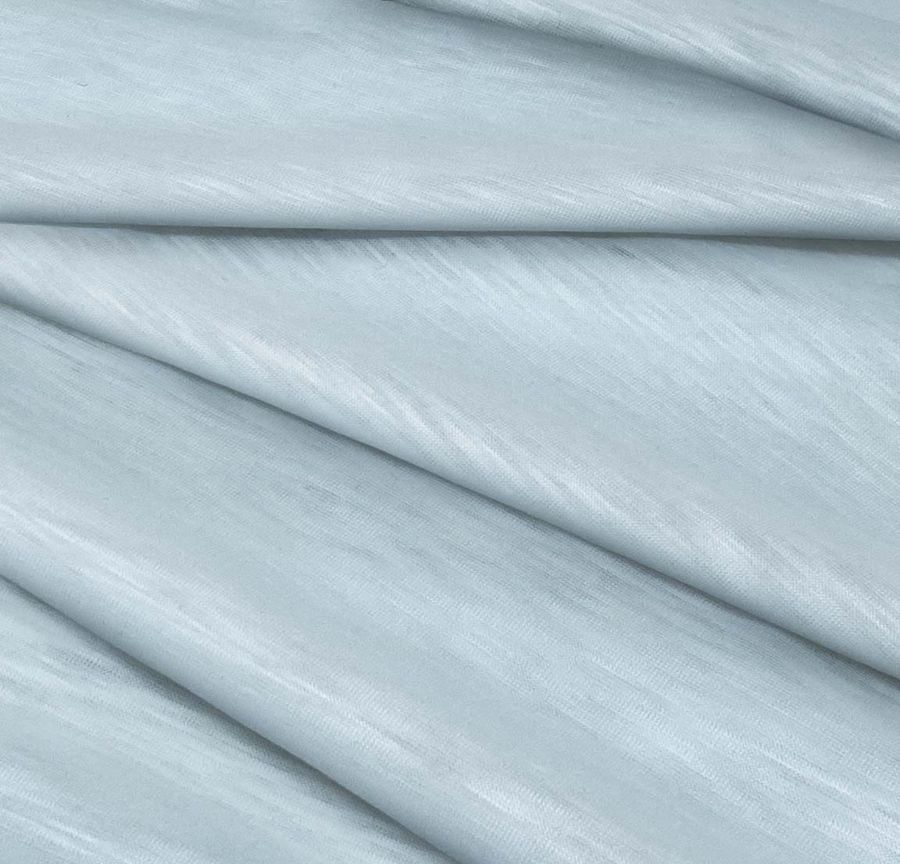 La tela base tiene una textura lisa y visual translúcida y jaspeada, y una textura elástica y suave al tacto. El color impreso es uniforme y vibrante, con una excelente saturación de tonos. Esta tela es ideal para prendas de punto para mujeres y hombres, especialmente para la confección de camisetas.