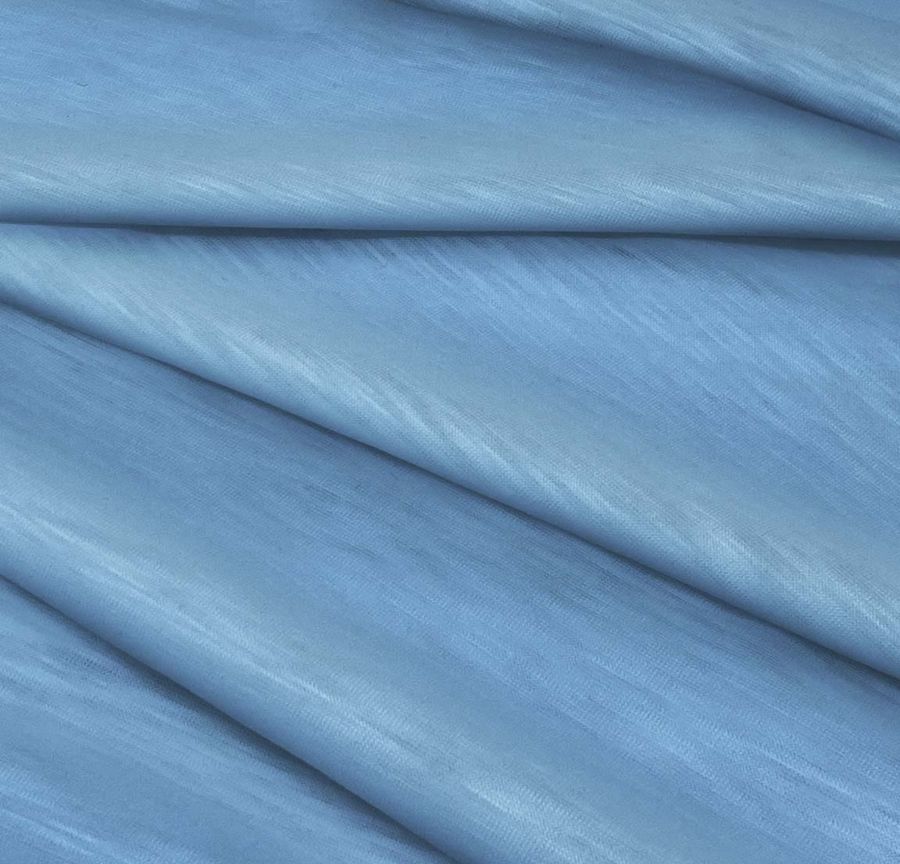 La tela base es Punto Camiseta Jaspeado - Dubái, una tela de punto hecha de 100% poliéster que tiene un gramaje de 135 gr/m2 y un ancho de 160 cm. El color liso impreso en la tela es Azul Iceberg, el cual está compuesto por una mezcla de tintas Cyan, Magenta y Yellow en una proporción de 62, 33 y 3 respectivamente. Este color liso es muy simbólico ya que representa la frescura y la claridad del hielo, lo que lo convierte en una excelente elección para prendas de verano. El Azul Iceberg combina bien con otros tonos suaves como el blanco y el gris claro, pero también con tonalidades más oscuras como el negro y el marino.