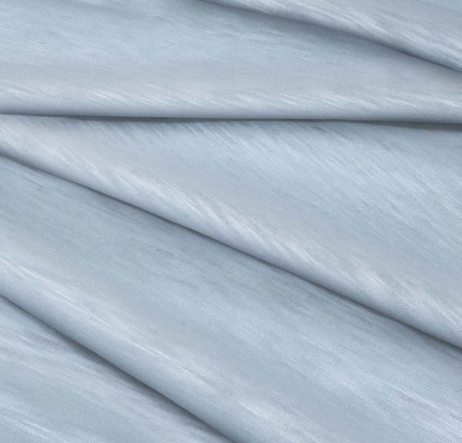 La tela base de Punto Camiseta Jaspeado es una tela suave y lisa, con una textura visual translucida y jaspeada que le da un aspecto único. El color Azul impreso es vibrante y atractivo, con un acabado mate que lo hace aún más elegante. Este color combina muy bien con tonos neutros como el blanco y el gris, así como con colores similares como el turquesa y el celeste.