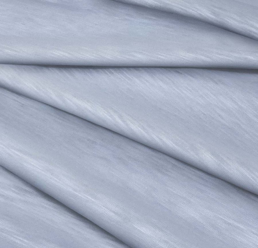 Las características generales de la tela base son su textura lisa y elástica, su transparencia visual y la sensación suave al tacto. Respecto al color liso impreso, se trata de una tonalidad suave y delicada que aporta calma y serenidad a cualquier creación. Las aplicaciones y usos de este tejido son especialmente adecuados para la moda de prendas de punto, tanto para hombres como para mujeres, y en particular para la temporada atemporal. Este tejido se utiliza especialmente para la confección de camisetas y otras prendas de ropa casual.
