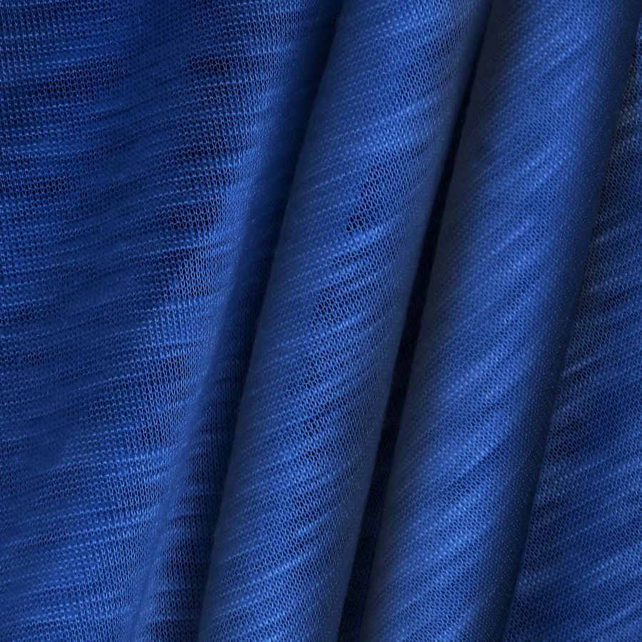 Las características más notables de esta tela son su textura lisa y elástica, traslúcida y visualmente jaspeada. Estas características se unen al color intenso y vibrante, lo que la convierte en una opción ideal para prendas de moda tanto para hombre como para mujer, especialmente para camisetas. Adicionalmente, su gramaje y composición permiten que tenga una buena durabilidad y resistencia al uso y a los lavados.