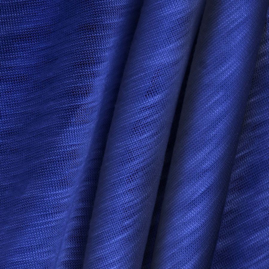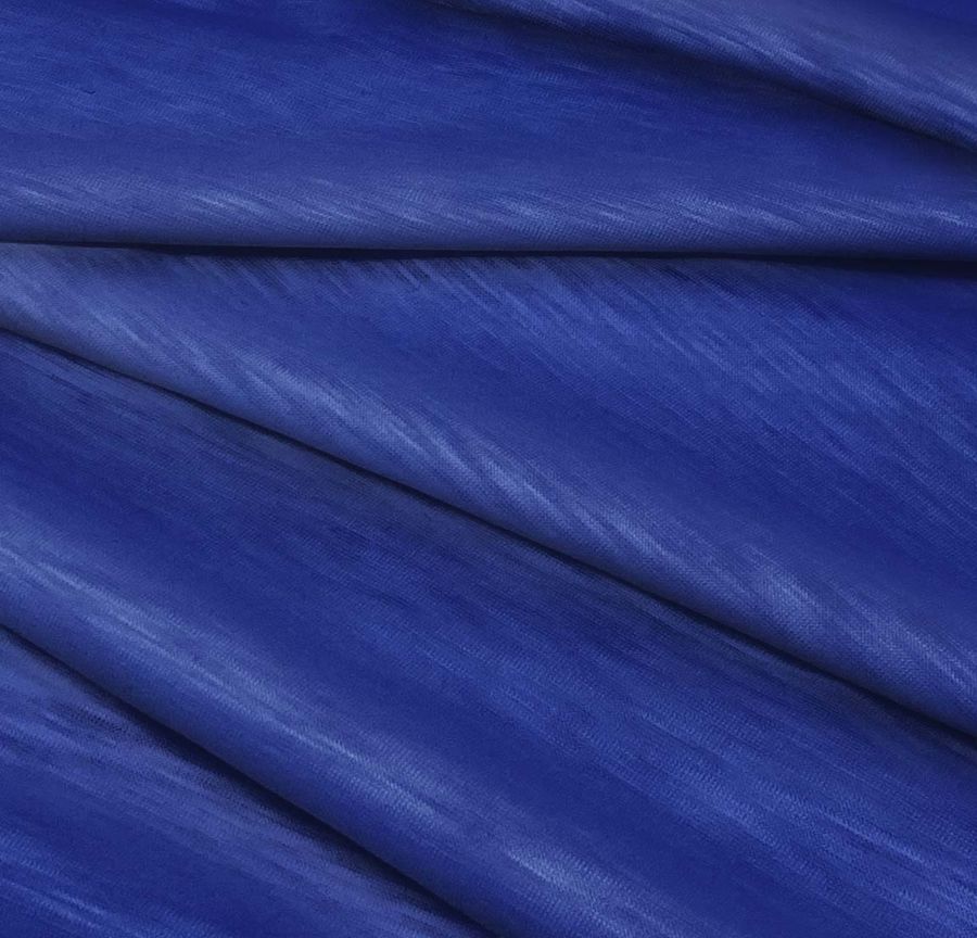 La textura de la tela es lisa, con un tacto suave y elástico, y su visual es translúcida y jaspeada. Estas características la hacen perfecta para prendas de punto, concretamente camisetas para hombre y mujer. La tela es atemporal y se adapta perfectamente a cualquier temporada del año.