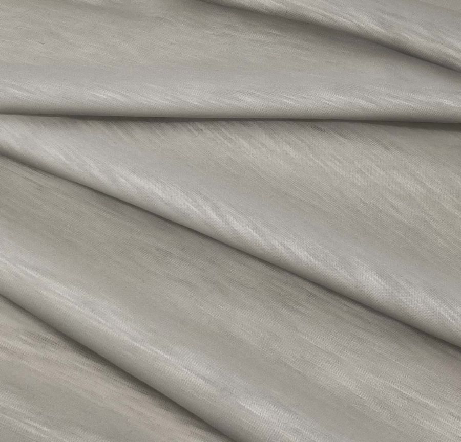 La tela base es Punto Camiseta Jaspeado - Dubái, una tela de punto compuesta por 100% poliéster, con un gramaje de 135 gr/m2 y un ancho de 160 cm. El color liso impreso es de tonalidad Gris, Plata pálida con un valor de 36 31 36 11 en CMYK. Este color se caracteriza por tener tonalidades frías y elegantes, perfectas para la fabricación de prendas de moda, especialmente para camisetas. El tono secundario es una mezcla equilibrada entre el gris y el plateado, lo que le da un aspecto jaspeado sutil y moderno. Además, este color combina perfectamente con blancos, negros y tonalidades azules, creando un look atractivo y moderno.