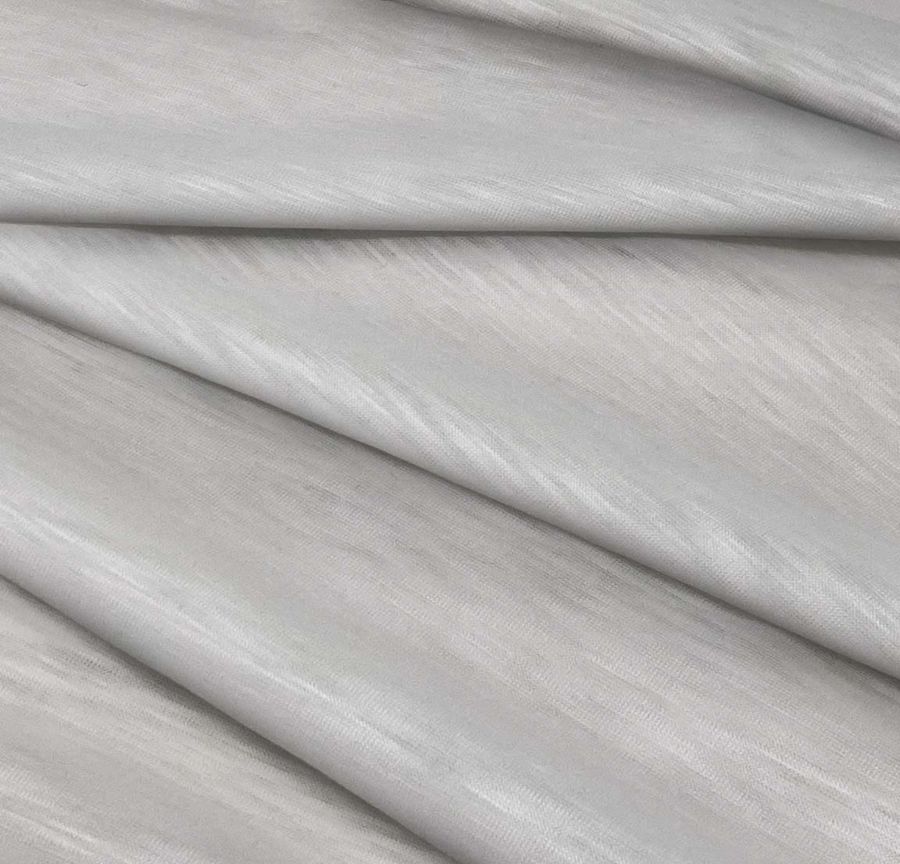 En resumen, la tela base Punto Camiseta Jaspeado - Dubái es una tela de punto compuesta de 100% poliéster, de gramaje 135 gr/m2 y ancho 160 cm. Su color liso impreso es Gris Nube Gris con un CMYK 25 21 21 2. Esta tela es de textura y tacto lisos, visual translúcida y jaspeada, elástica y versátil, recomendada para prendas de punto en la moda de mujer y hombre, especialmente camisetas. Es impresa digitalmente con una sola cara, y se recomienda seguir los cuidados necesarios para mantener su calidad.