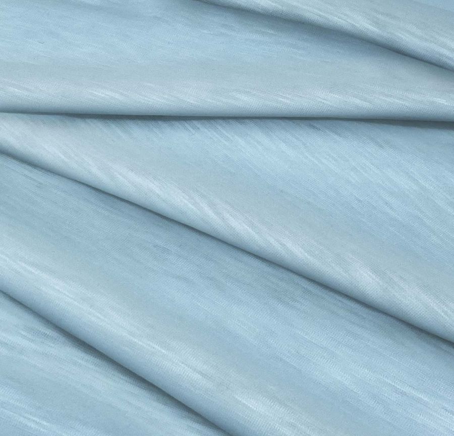 La tela base, Punto Camiseta Jaspeado - Dubái, es una tela de punto compuesta al 100% de poliéster con un gramaje de 135 gr/m2 y un ancho de 160 cm. El color liso impreso en la tela tiene un tono Azul claro del día, obtenido mediante la utilización de una combinación de tintas CMYK, siendo estas: 40 de cian, 8 de magenta, 2 de amarillo y 0 de negro.