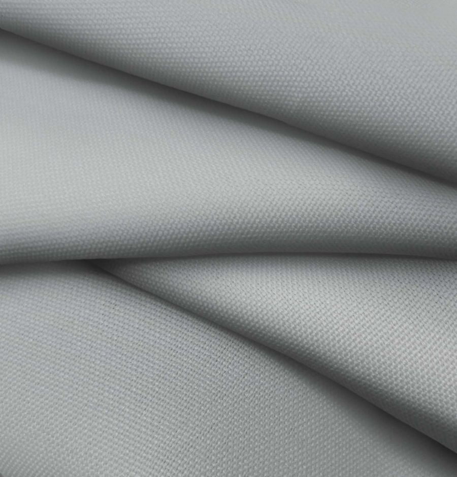 La tela base, Tejido Hidrófugo Antibacteriano - Tromso, es un tejido técnico de 100% poliéster con un gramaje de 160 gr/m2 y un ancho de 150 cm. El color liso impreso en esta tela es Gris Platino, desglosado en CMYK: 43 32 31 9, lo que sugiere una combinación elegante y sutil. Por una cara, la tela está impresa con el color liso por impresión digital textil, lo que garantiza una alta calidad de imprenta, la tela no es tintada sino impresa por una sola cara.